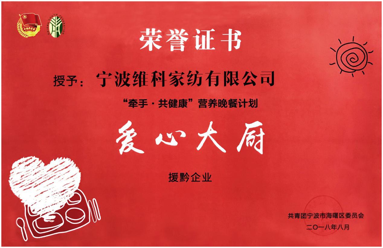 海曙區委副書記、政法委書記張啟表在蒞臨維科家紡攤位詢問義賣情況時,對于維科家紡的企業責任感、愛心奉獻精神,表示了高度贊揚。海曙區團委更是授予維科家紡“愛心大廚援黔企業”榮譽稱號。
