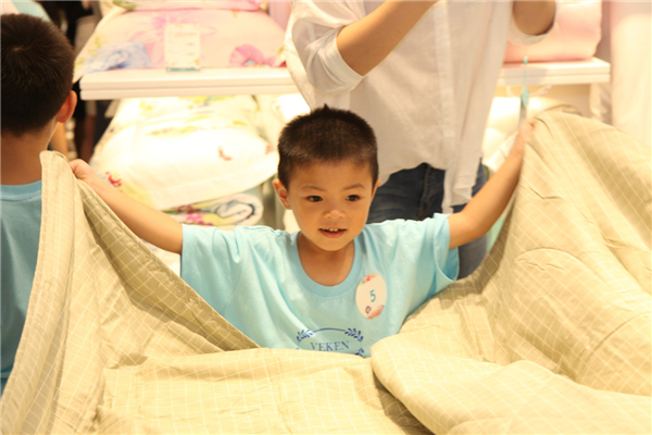 “維科鋪床小達人”作為此次活動的特色項目,利用維科匯門店自身優(yōu)勢,由店員手把手教授小朋友實用的空調(diào)被折疊技巧,讓孩子們在玩的同時,學(xué)習(xí)到有用的生活技能,在家也能幫父母做一些力所能及的事情。